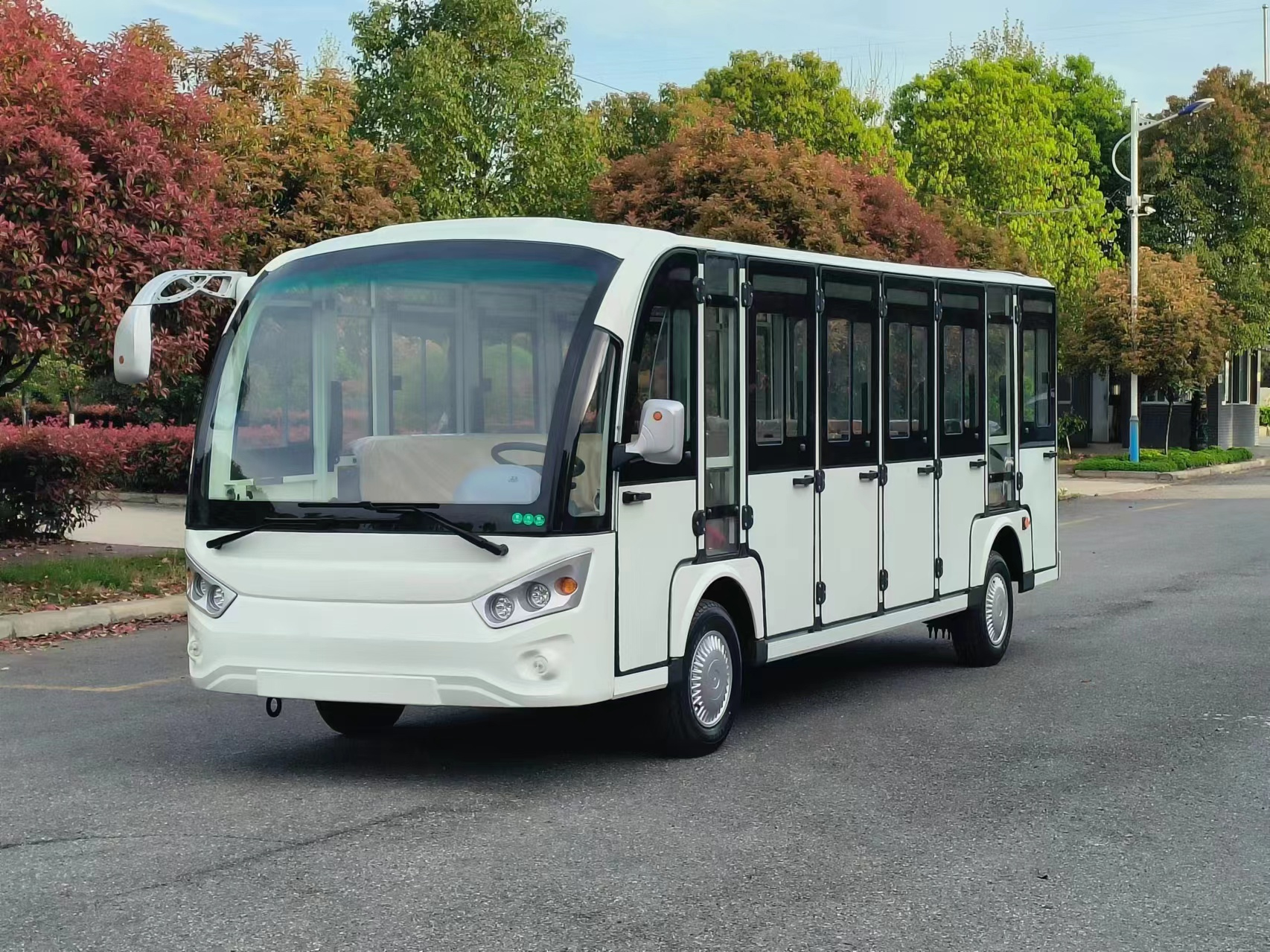 聚乾電動觀光車視野開闊,游客在車上可以盡情觀賞景觀,減震性能優良,行駛平穩,駕駛操作簡單、乘坐舒適。 節能環保聚乾電動觀光車行駛過程中無有害氣體產生,對環境無污染,無噪音產生,絲毫不會影響到游客旅游的心情。聚乾電動觀光車外形飽滿,乘坐更寬敞舒適。維護更簡單,整車更耐用。聚乾電動觀光車讓您游覽更輕松。